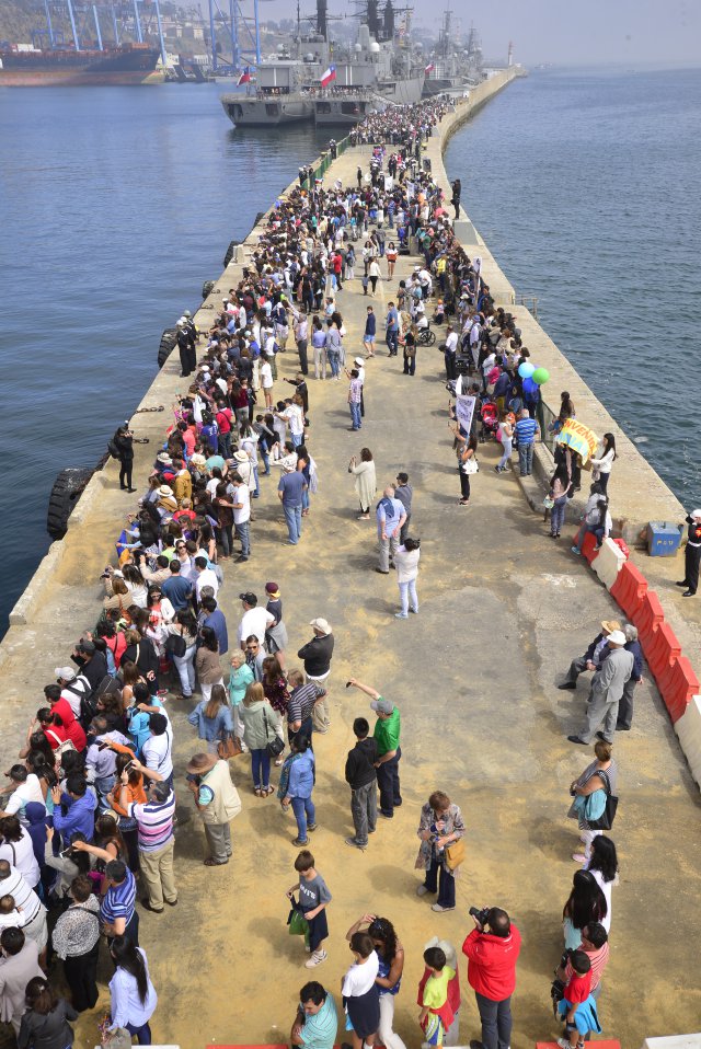 Valparaiso. Alrededor de las 12:00 horas, de este domingo 8 de enero recaló a Valparaíso el Buque Escuela "Esmeralda", dando término a su 61° Crucero de Instrucción, siendo su dotación, recibida por miles de familiares y amistades, quienes llegaron muy temprano al Molo de Abrigo con globos y pancartas para darles la bienvenida.