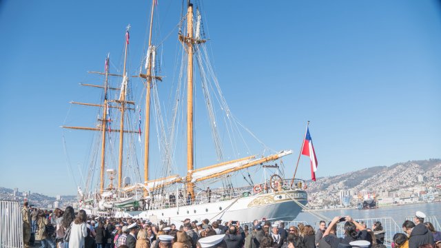 Domingo 9 de junio de 2019 ChileEn esta oportunidad, la dotación de la “Dama Blanca” está compuesta por 276 tripulantes, de los cuales 66 son Guardiamarinas, 36 Marineros, 11 Oficiales extranjeros invitados y 4 nacionales pertenecientes a las otras ramas de las Fuerzas Armadas, de Orden y Seguridad.